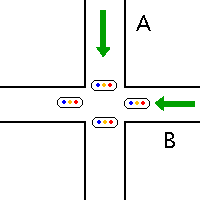 信号待ちの時間は、どちらも同じくらい。こちらが赤ならば、目の前を横切る道は青の筈です。